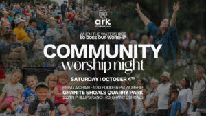 5:30 PM FREE Food service will begin 6:00 PM Worship Service begins Bring a chair and enjoy a night of Community Worship at Quarry Park in Granite Shoals.